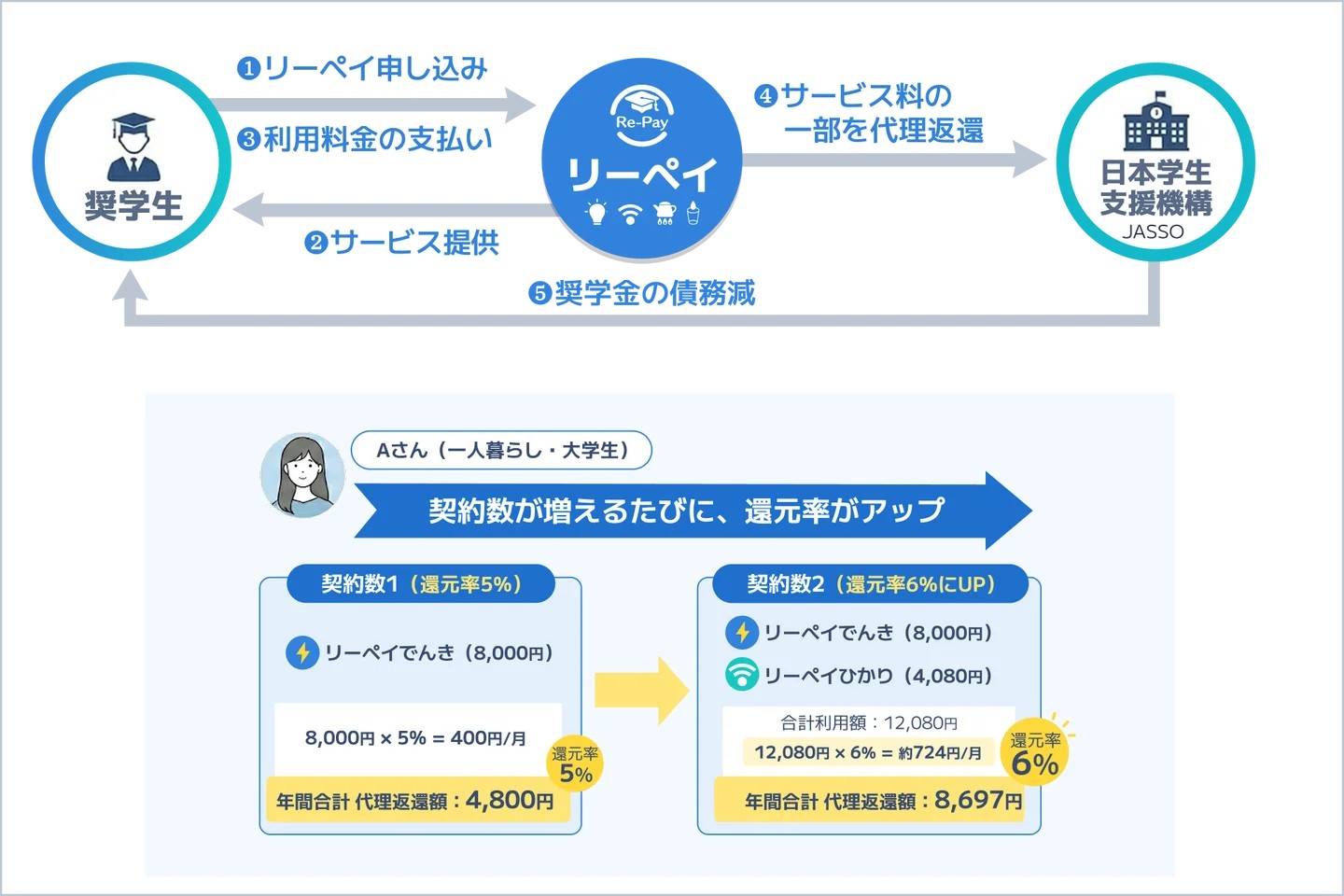 毎月のサービス利用特典(キャッシュバック分)が、奨学金の返還に充てられます。